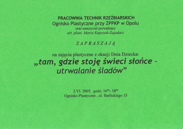 Tam, gdzie stoję świeci słońce - utrwalanie śladów Dzień Dziecka w Ognisku Plastycznym, Opole, 2005