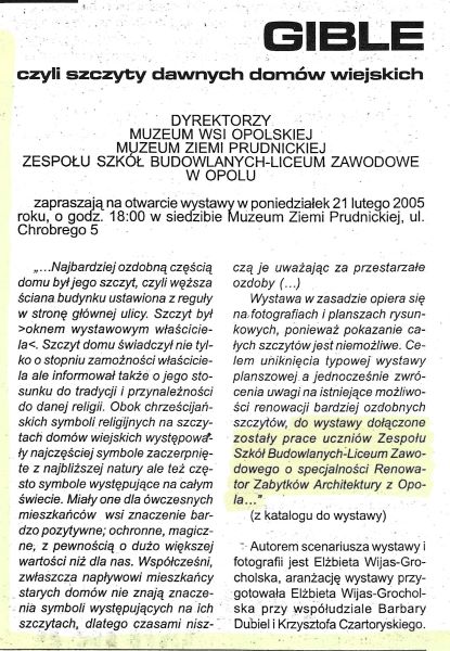 Gible, czyli szczyty domów wiejskich, Opole, Prudnik, 2004, 2005