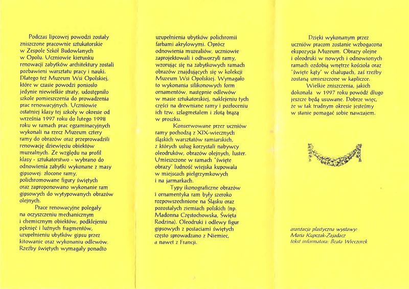 Muzeum Wsi Opolskiej w Bierkowicach, Muzeum Ziemi Prudnickiej w Prudniku, Zespół Szkół Budowlanych w Opoluautorka wystawy: Elżbieta Wijas-Grocholska