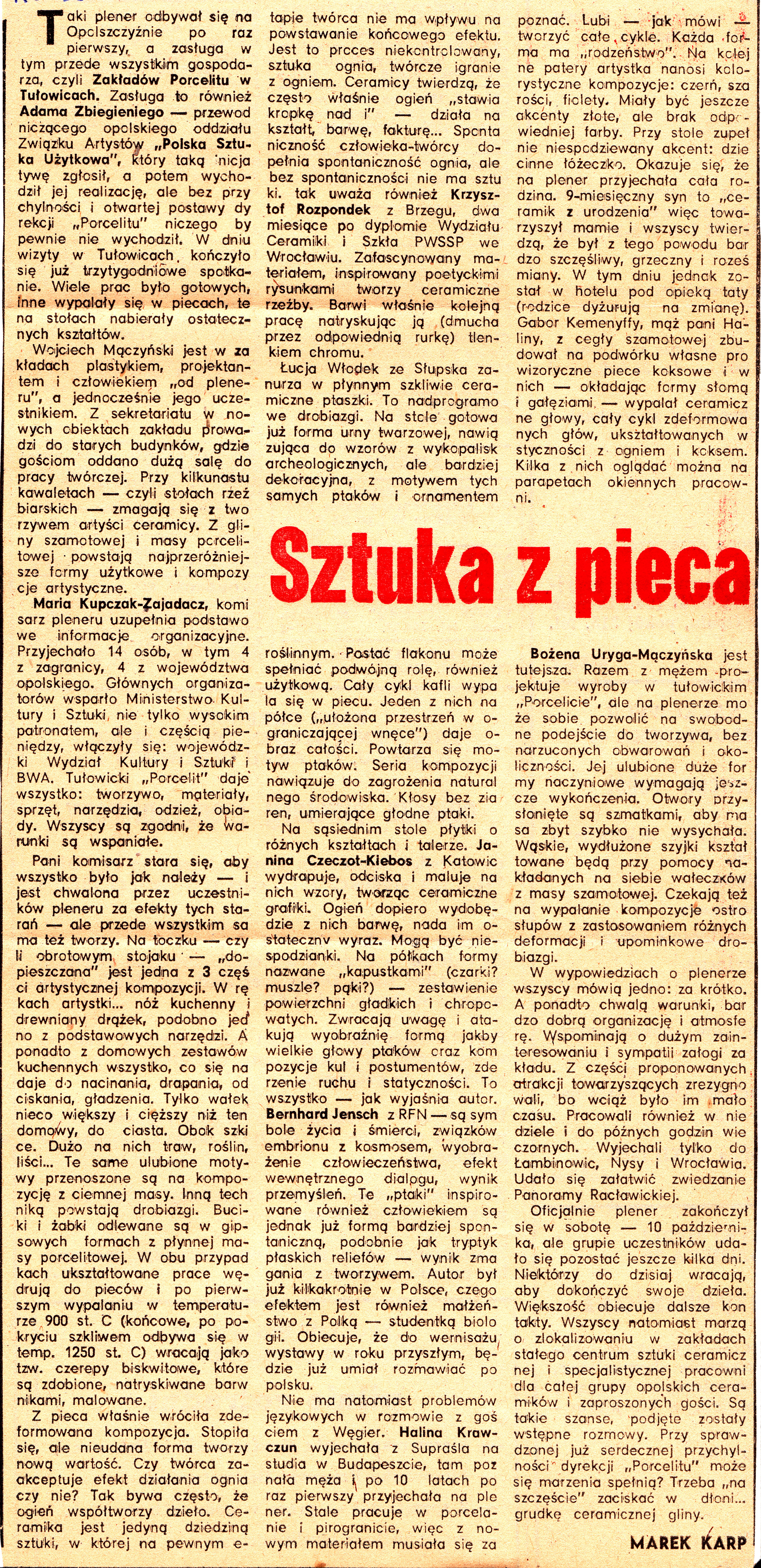 Inicjatorka i komisarz sympozjów oraz wystaw: Maria Kupczak-Zajadacz, współpraca: Adam Zbiegieni ZPAP-PSU OpoleMiejsce pracy podczas sympozjów: Zakłady Porcelitu Stołowego w Tułowicach
