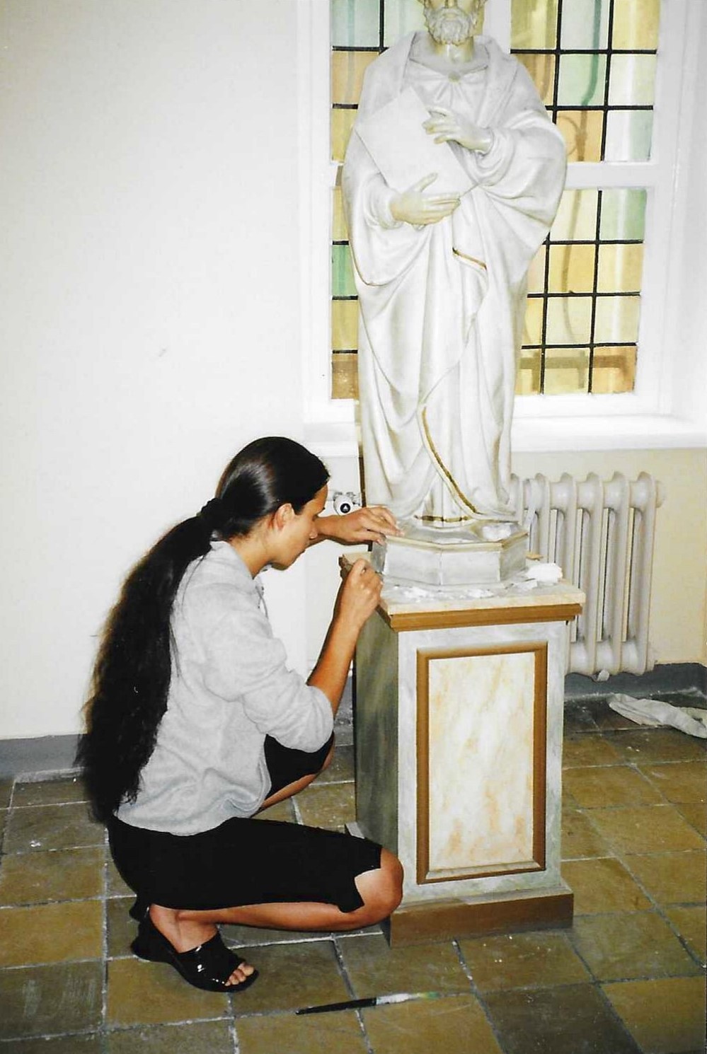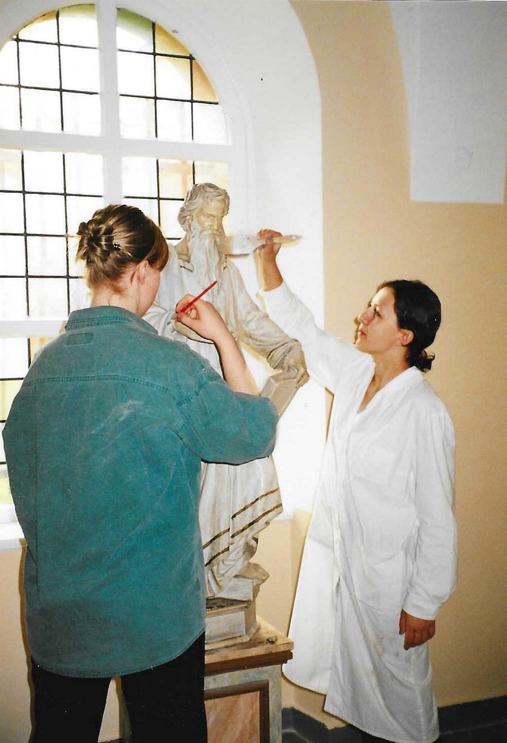 Praktyka zawodowa w kościele o.o. Franciszkanów - prace renowatorskie uczniów pracowni renowatora zabytków architektury Liceum Zawodowego ZSB, Opole 1999