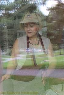 ..."rasowa rzeźbiarka". Pisząc to mam na myśli: arystokratyczna, inna od tych, którzy ją otaczają, nieprzeciętna, wyrazista, wybitna. Tworzy prace szorstkie, nieszkliwione, sprawiające wrażenie surowych i czerstwych, w naturalnych kolorach ziemi. Materiał, z którym pracuje, to porcelana i glina szamotowa...